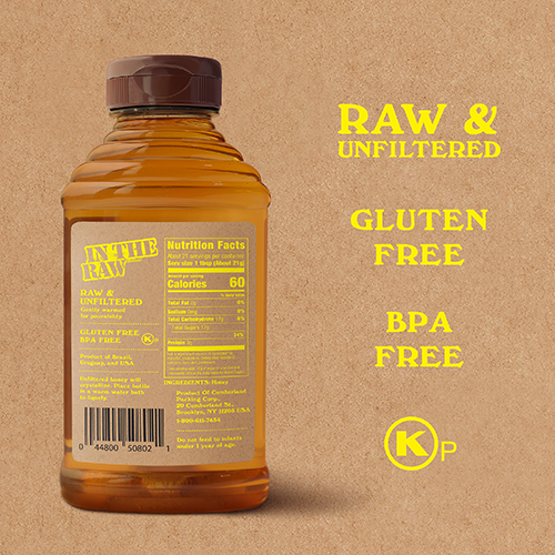 ALL THE GOOD STUFF: Raw honey from In The Raw. Gently warmed so it pours easily, and left unfiltered to keep all the natural good stuff in.