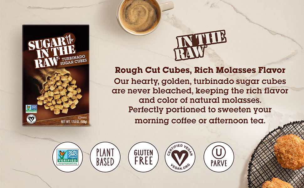 The delicious Sugar In The Raw® flavor that started it all is now available in rough cut cubes. Made from the very same Turbinado sugar grown in the tropics, these cubes are perfectly proportioned to sweeten your morning coffee, afternoon tea or whatever else you like to sip. Just plunk them in and enjoy.